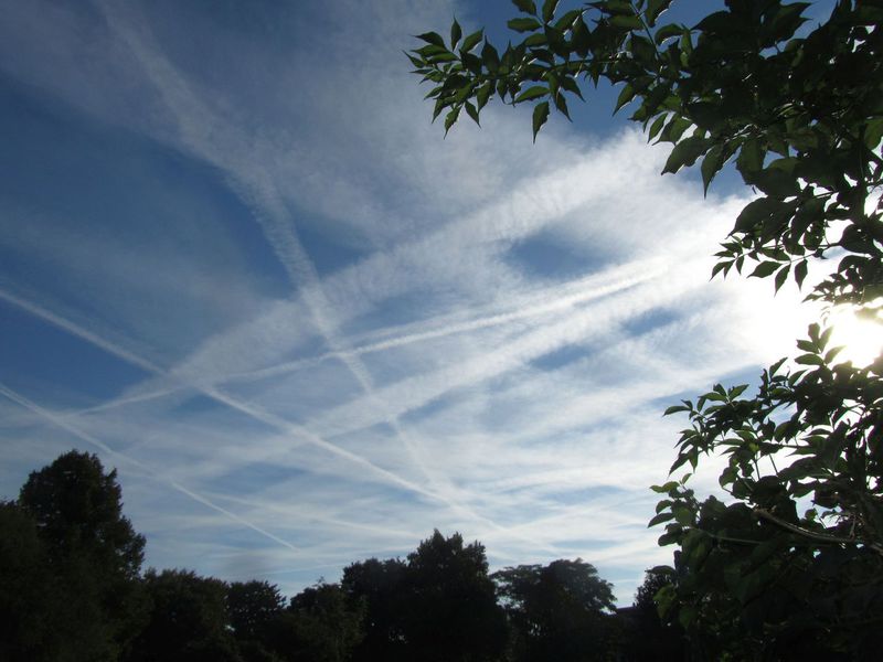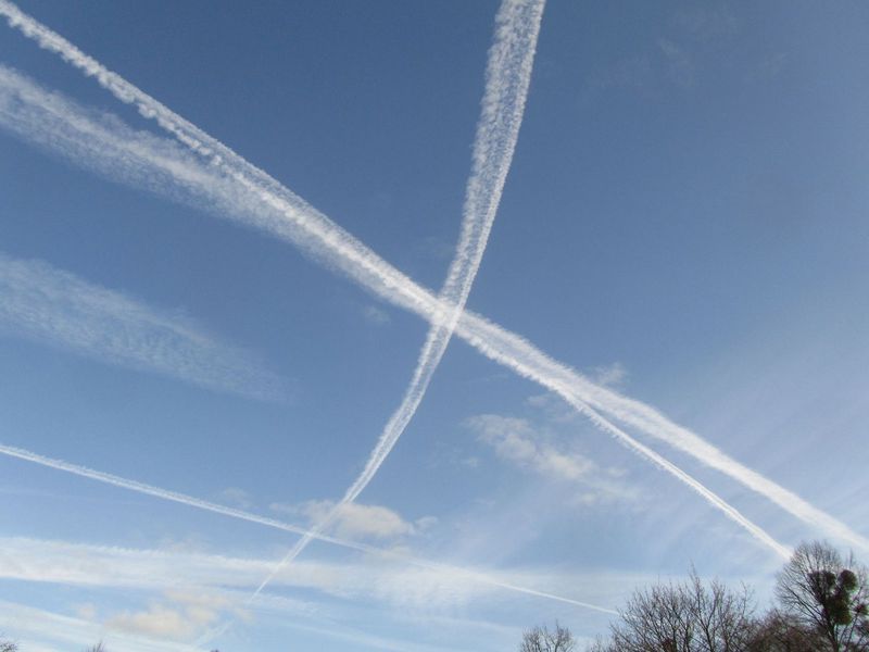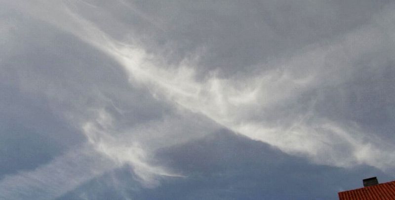 Oben: Alle gezeigten (defekten) Strukturen befinden sich "in den Kondensstreifen" des Fotos links