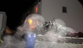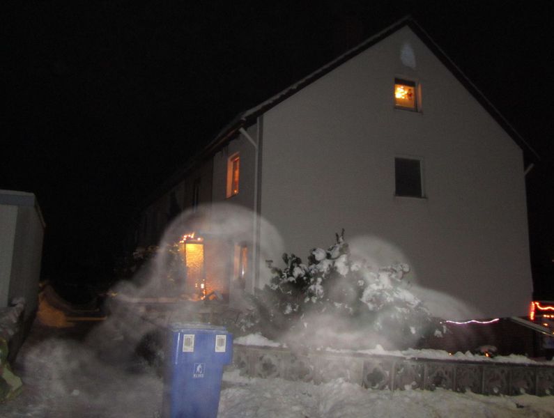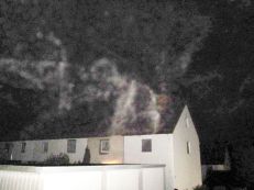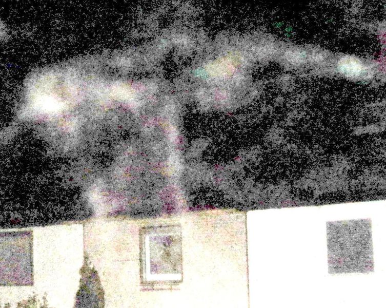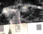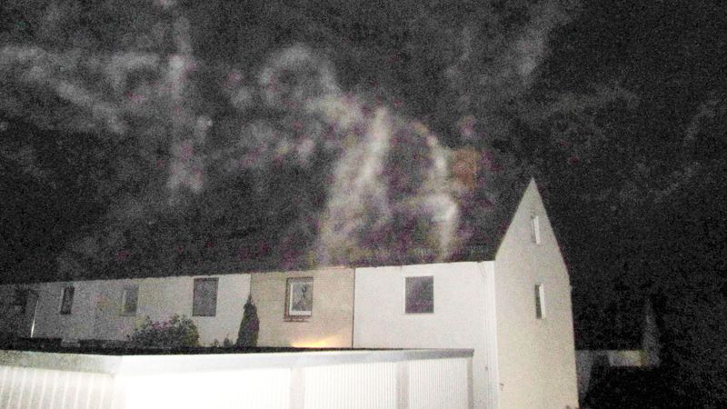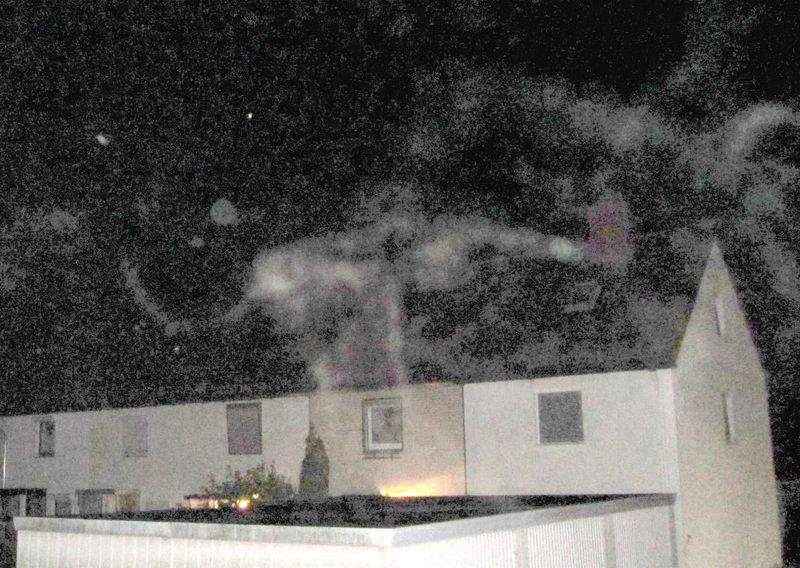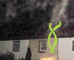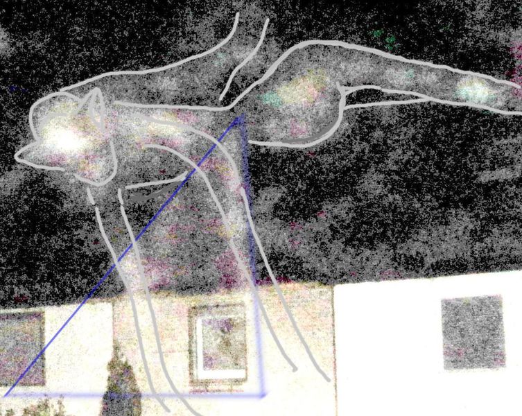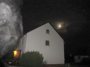 (von der Straße aus) fotografieren sollte. Ich sah nichts, alles sah klar und ungetrübt aus, wie meistens. Und doch: Ich fotografierte, meiner Intuition folgend, den "leeren" Weg vor mir. Das Ergebnis - das, was dann im Display, und zuvor bereits im Schein des Blitzlichtes, sichtbar wurde - habe ich hier eingefügt.