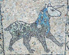Ein Mosaik (1213), das in Ravenna in einen Kirchenboden eingefügt wurde.