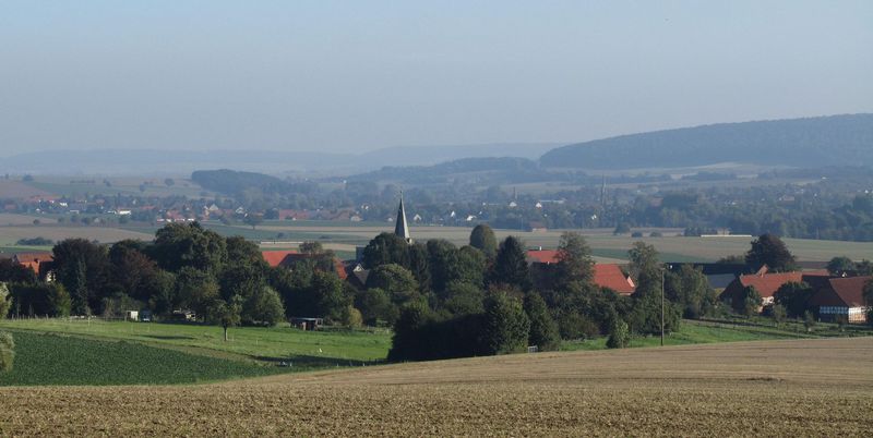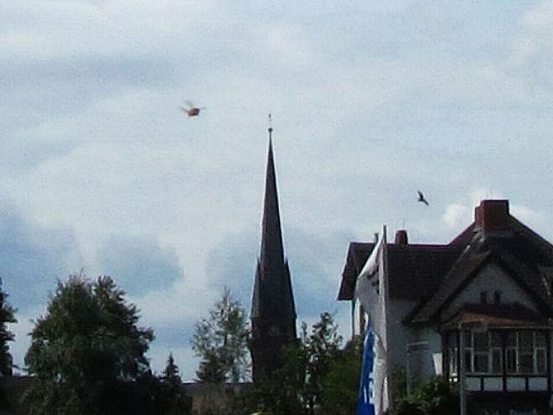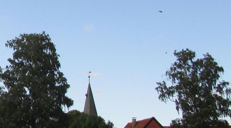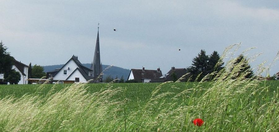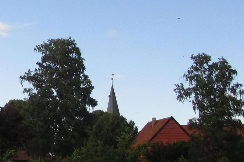(Im Vordergrund wurde eine Person fotografiert. Die Dorfkirche ist etwa 1 km entfernt.)