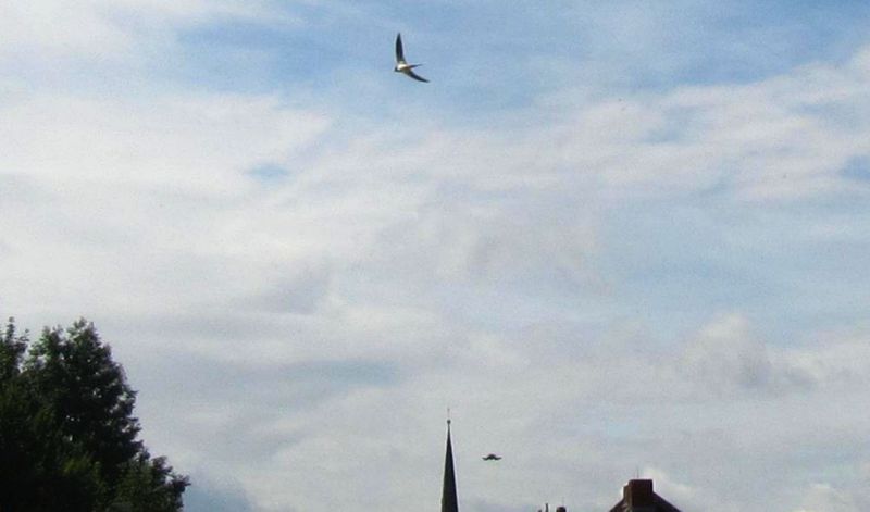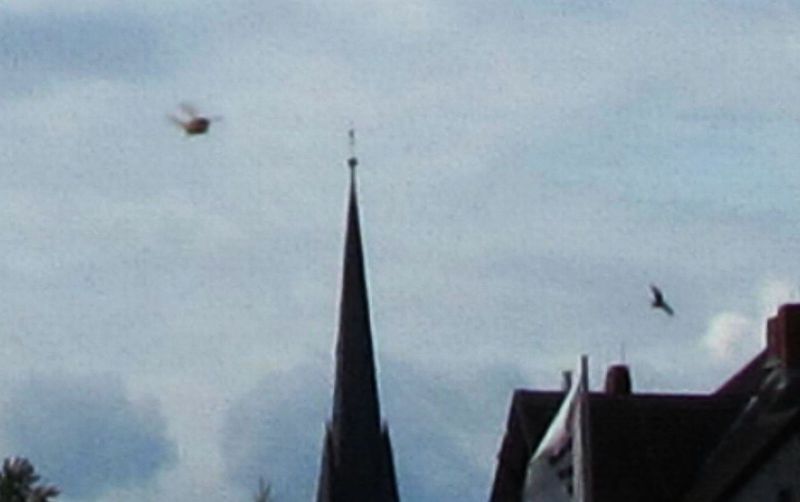 kaum aus dem Auto ausgestiegen, kam eine Taube angeflogen und blieb die ganze Zeit - bis wir wieder wegfuhren - dicht über uns. Dabei entstand das Foto.