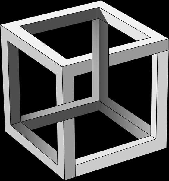 M. C. Escher wurde in erster Linie (in der Kunstwelt und der Mathematik) durch seine Darstellungen bekannt, die auf den ersten Blick gar nicht erkennen lassen, dass sie perspektivisch unmöglich sind und uns nur durch optische Täuschung natürlich erscheinen. Erst auf den zweiten Blick (der in der Unmöglichkeit der Darstellung nur schwer Halt findet) wird die Widersprüchlichkeit deutlich. Escher durchbricht mit seinen „unmöglichen Bildern“ (wie sie oft genannt werden) scheinbar die Dimensionen, indem er sie einfach miteinander verknüpft (bzw. miteinander „verschränkt“).