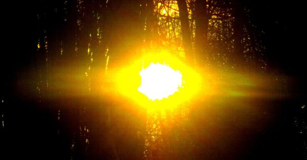 Das strahlende Licht der frühen Morgensonne, das sich durch einige Büsche und Bäume einen Durchgang suchte und "mir entgegen" schien. Vergleichbar mit einer Lichtöffnung in einem uralten Heiligen Gebäude, dazu geschaffen, um zyklisch das Licht bis zum Allerheiligsten (verborgen in der Dunkelheit) vordringen zu lassen. Nachfolgend einige "Zeichen, Symbole und Muster" (von vielen weiteren), die sich darin offenbarten.